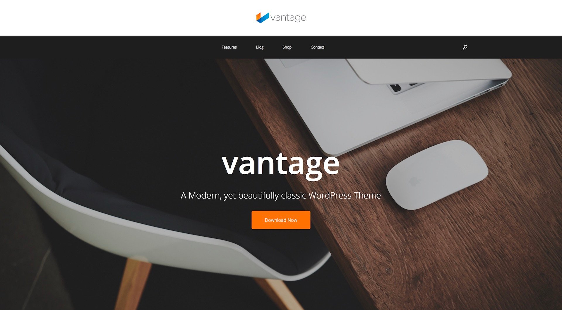 Vantage combines boxed and full width website layouts with multiple logo positions, and three menu alignment options, to give you plenty of flexibility when designing your header.